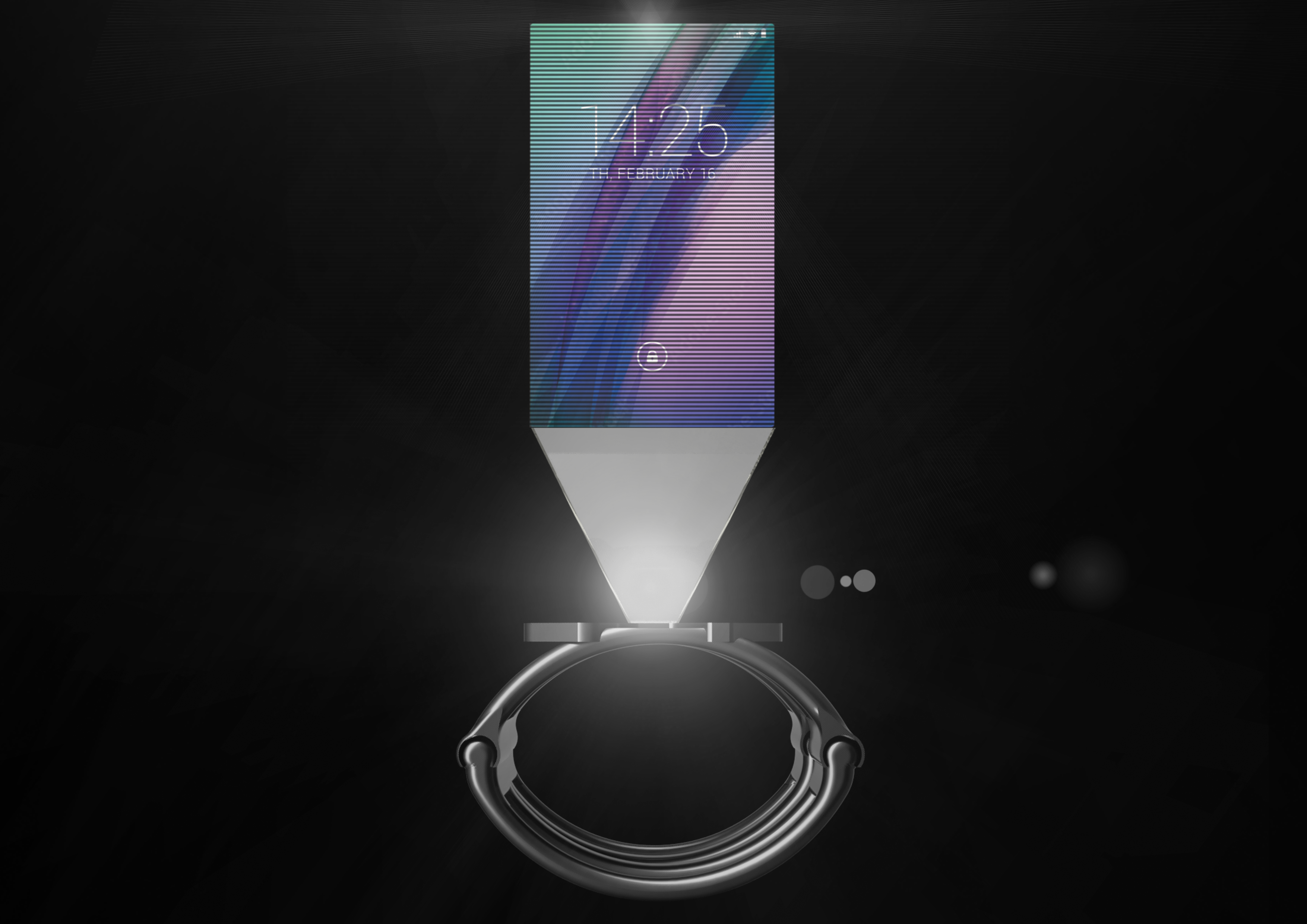 A wearable holographic projection unit, capable of connecting to a smartphone and projecting what it sees.